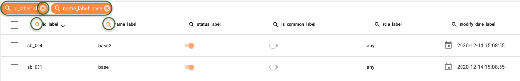 Если для колонки заполнено поле поиска, то кнопка «Поиск» подсвечивается оранжевым цветом (Рис. 5.6.10).